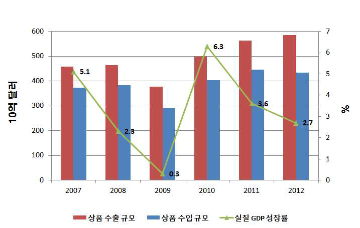 ¤· Çѱ¹ÀÇ GDP¼ºÀå·üÀº ¡®11³â°ú ¡¯12³â¿¡ µÐÈ­µÆ´Âµ¥, ÀÌ´Â Çѱ¹°æÁ¦°¡ ¼¼°è°æÁ¦ ȯ°æ¿¡ µû¸¥ ÇØ¿Ü ¼öÃâ½ÃÀå ¿©°Ç¿¡ ¹Î°¨ÇÏ°Ô ¹ÝÀÀÇÏ´Â ±¸Á¶À̱⠶§¹®ÀÓ.