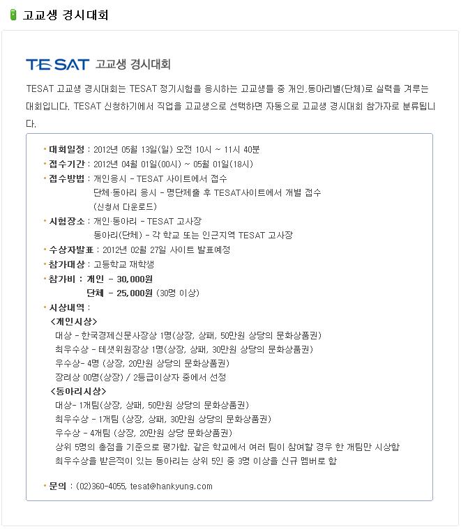 Á¦¡¡¸ñ TESAT °í±³»ý °æ½Ã´ëȸ ¾È³»